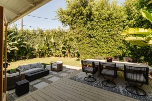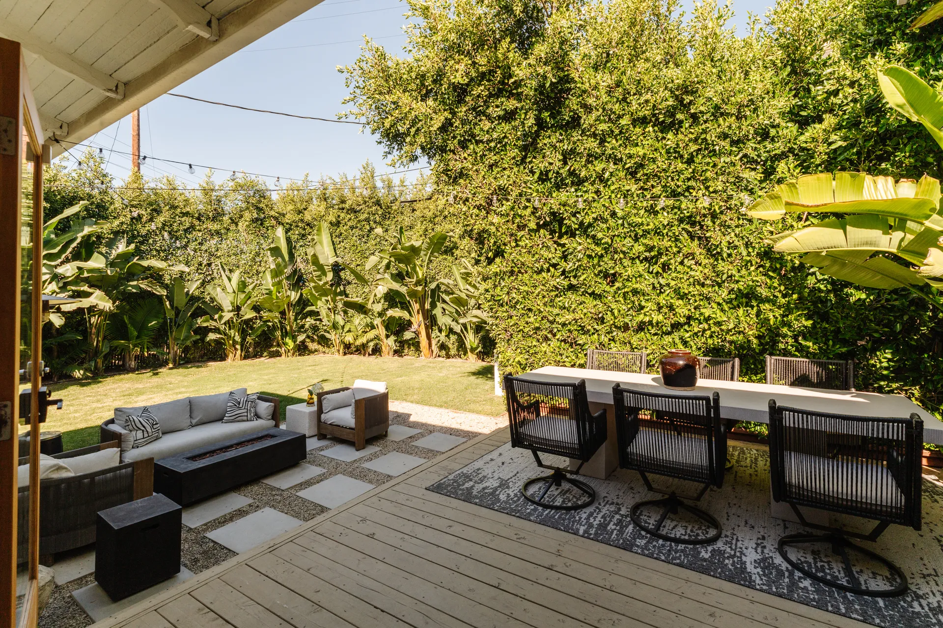 This thoughtfully updated Venice bungalow blends privacy, natural light, and a private wellness retreat featuring a sauna and cold plunge, all centered around one of the largest grassy backyards in Venice and designed for effortless indoor outdoor living in one of the Westside’s most coveted coastal neighborhoods. A charming front courtyard welcomes you into the residence, where original bay windows flood the living room with natural light and create an inviting space for relaxing or entertaining. The open flow moves seamlessly through the dining area into a minimalist, design-forward kitchen, creating an easy rhythm for everyday living and hosting. French doors extend the living space to a sun drenched dining deck overlooking the expansive backyard complete with a full outdoor kitchen. The grounds offer endless possibilities for entertaining, play, or future customization, while the sauna and cold plunge create a spa-like setting to unwind after a day at the beach. Whitewashed interiors give the home a bright contemporary feel while remaining low maintenance and highly functional. Fully gated and hedged for privacy, the property also features secure parking for two vehicles, enhancing the home’s rare compound-like setting. A unique opportunity to enjoy relaxed Venice living just moments from the beach and Abbot Kinney Boulevard.